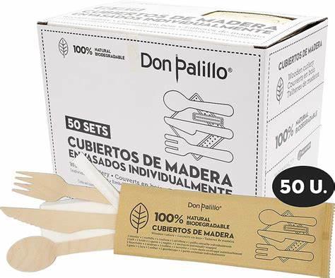 Pack cubiertos de madera 5 pzas, 50 unid cantidad